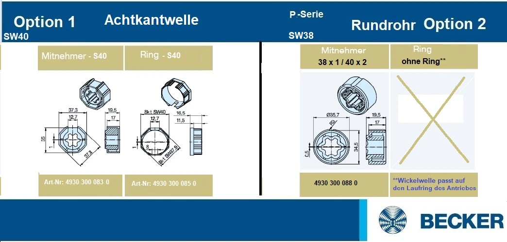 Becker - Rollladenantriebe P5-E03 bis P9-E03 Serie P-E03