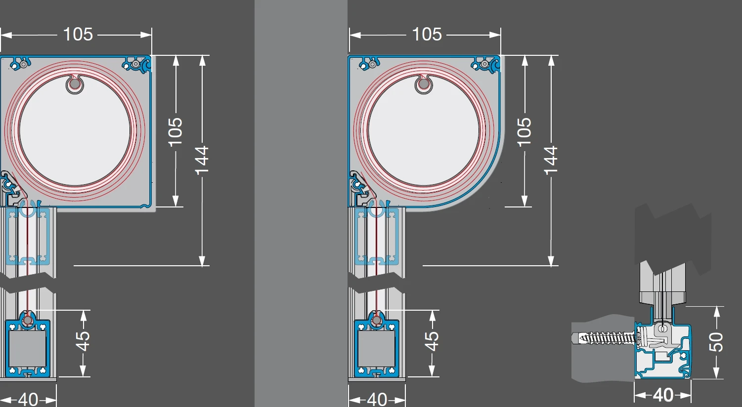 Typ Eckig und Typ Rund: Senkrechtmarkisen für fassadenbündigen Einbau.