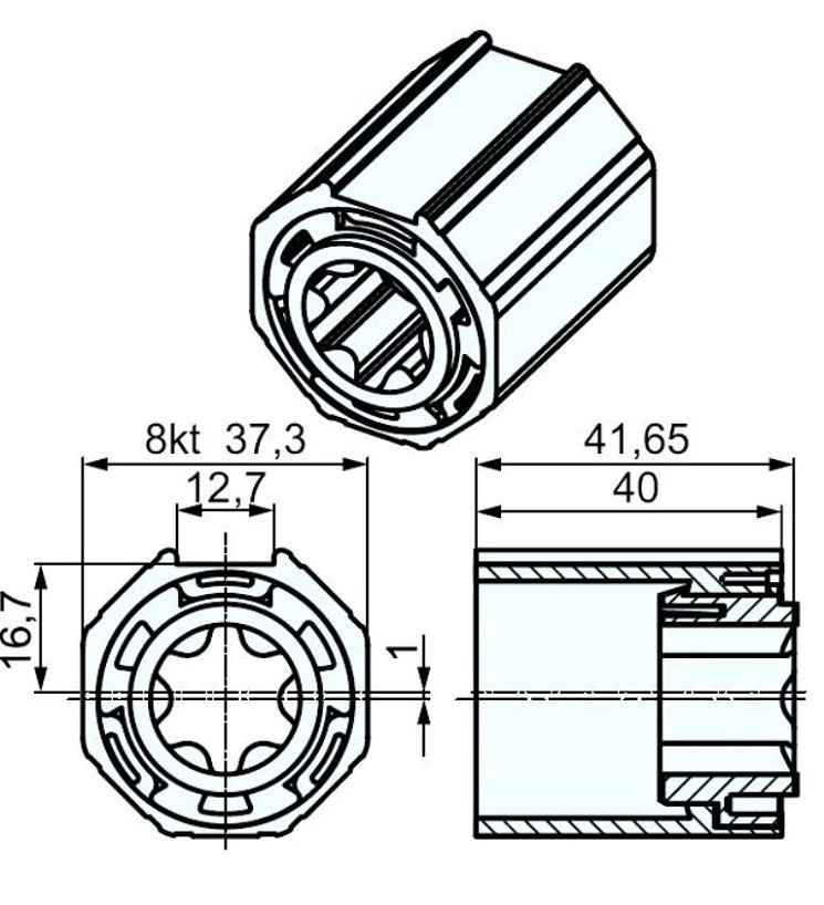Adapterset für Achtkatwelle O-S40 ,für sensible Hinderniserkennung für Becker Rohrmotoren Baureihe P