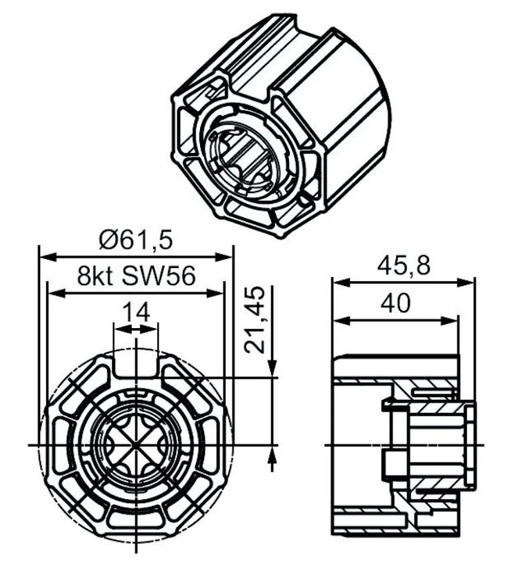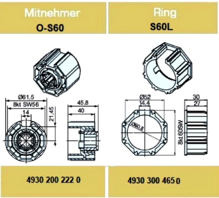 Adapterset für Achtkantwelle O-S60 , für sensible Hinderniserkennung für Becker Rohrmotoren P* und R Serie