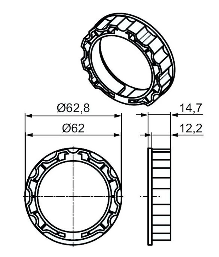 bestehend aus Mitnehmer und Ring aus Kunststoff