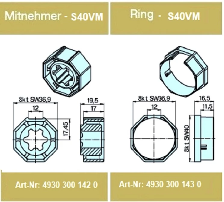 Mitnehmer S40VM  Art-Nr. 4930 300 142 0 GTIN-Nr : 4251852909355