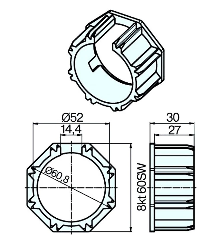 Adapterset für Achtkatwelle S60L ,für Rohrmotoren Becker Baureihe R Serie