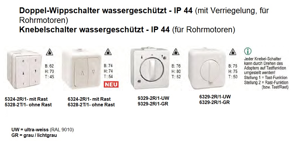WTS - Knebelschalter AP wassergeschützt - IP 44 (für Rohrmotoren)
