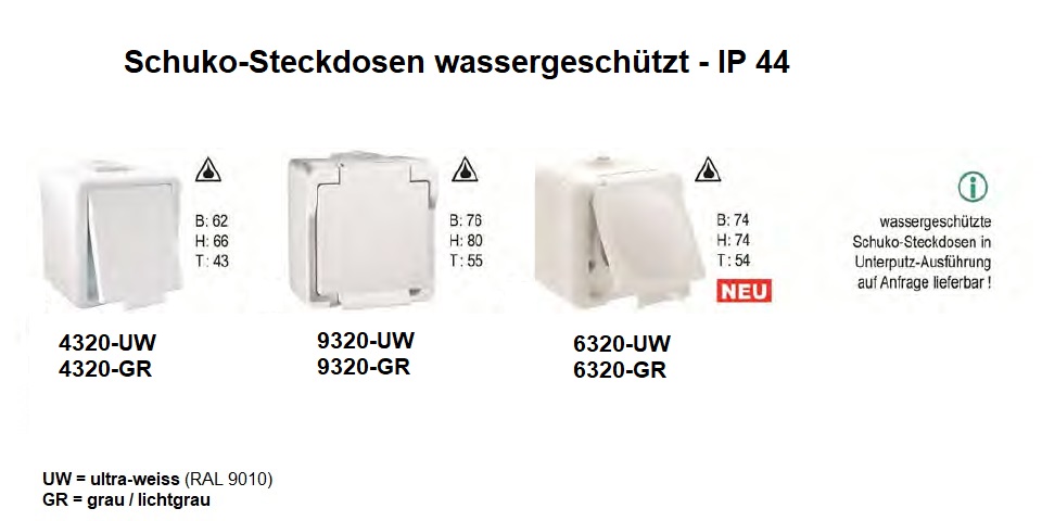 Lieferumfang : 1x Schuko-Steckdose mit Klappdeckel AP
