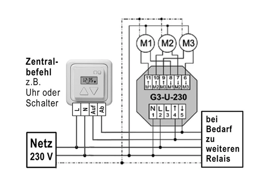G3-U-230 Trennrelais für 3 Motoren ohne Einzelbedienung