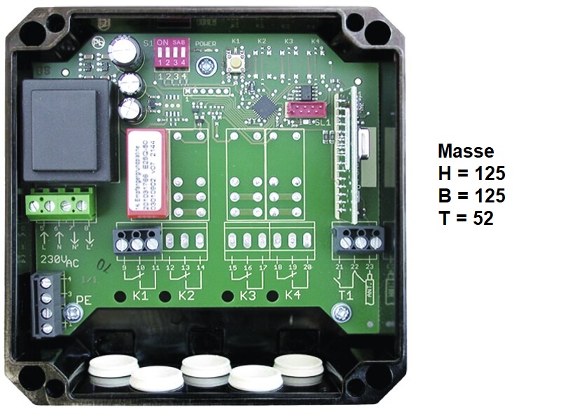 - 1 leistungsstarke, potentialfreie Relaisausgänge mit Wechsler