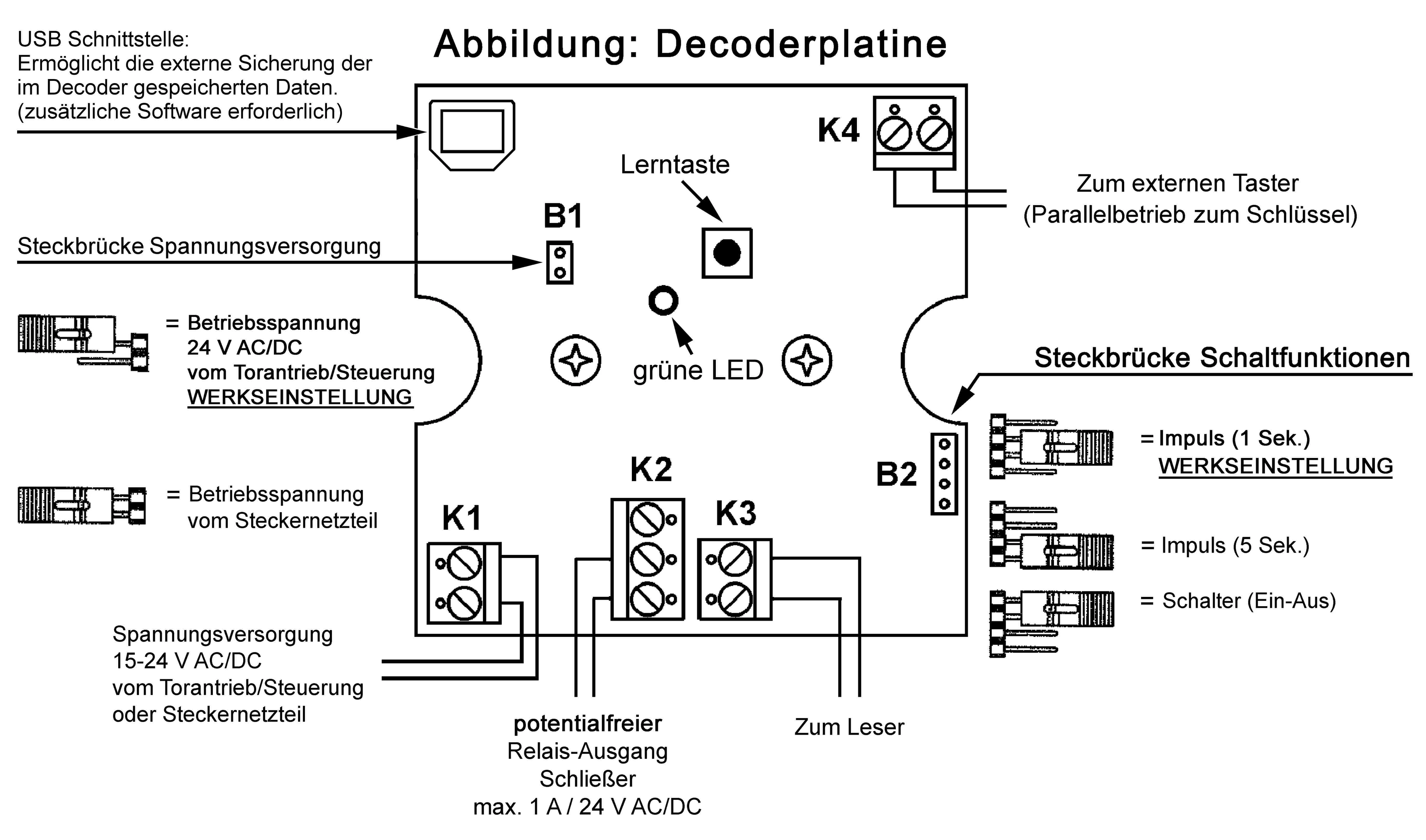 Hinweis! Nur einsetzbar für alle Transponderschalter TS-1000L Decoder mit USB-Schnittstelle (ab Lieferdatum 01/2015) !
