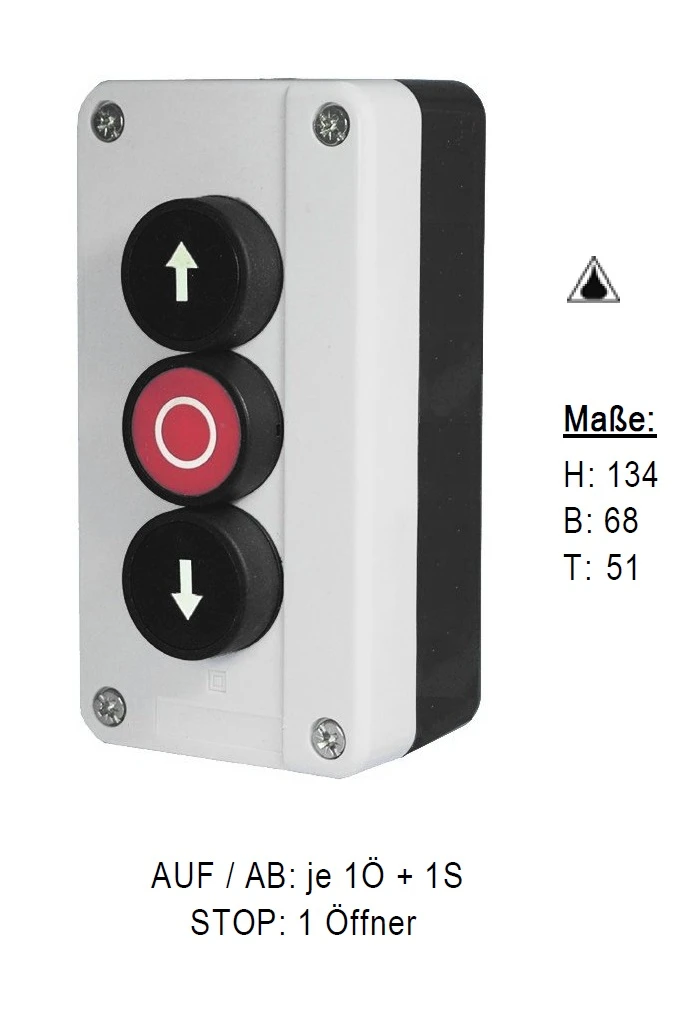Lieferumfang : 1 x Dreifach-Drucktaster AUF / STOP / AB