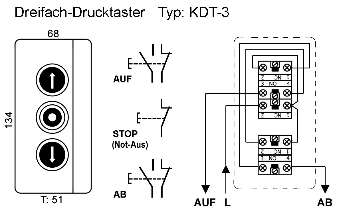 KDT-3 AP Dreifach-Drucktaster AUF / STOP / AB bereits vorverdrahtet