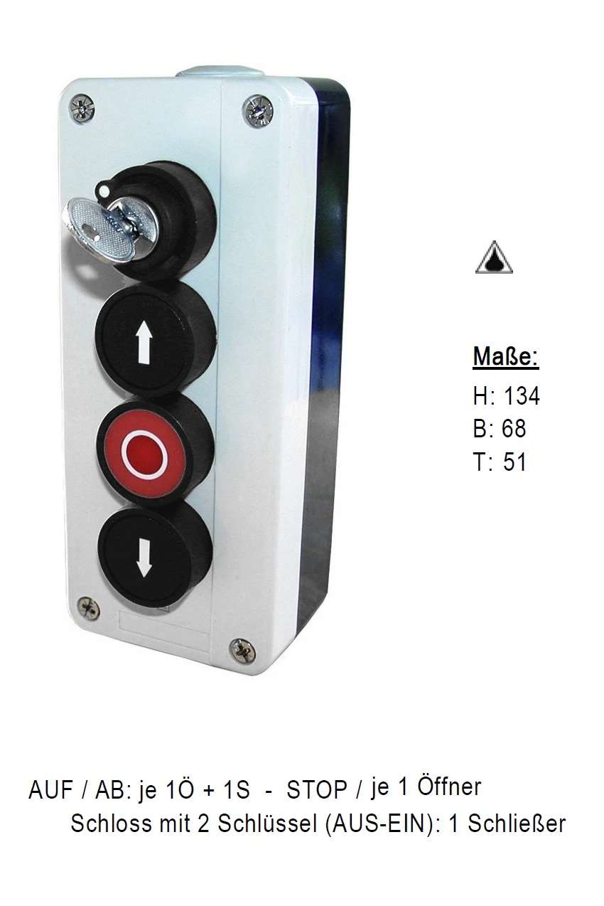Lieferumfang : 1 x Dreifach-Drucktaster AUF / STOP / AB mit  Schloss
