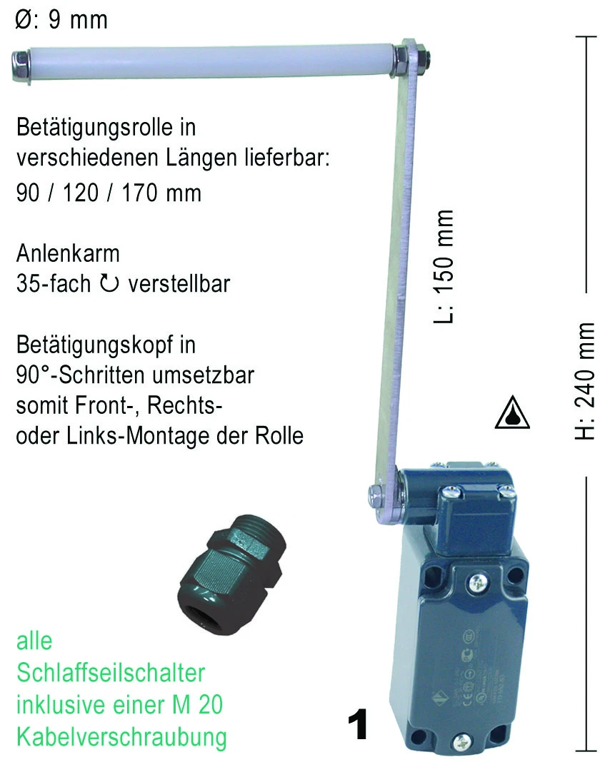 Lieferumfang : 1 x Schlaffseilschalter RECHT montiert