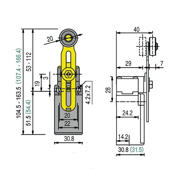EKU1-SP-KRHV Endschalter mit Radstellhebel, verstellbar Kunststoff Sprungkontakt 1S + 1Ö