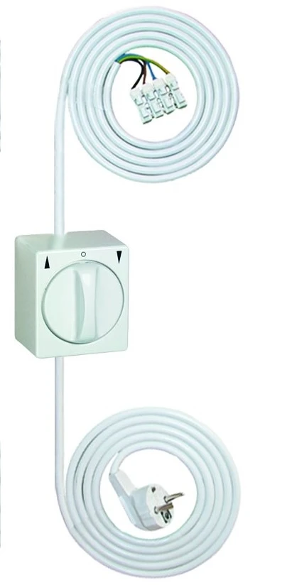 und Schukostecker, sowie 2 Meter Motorkabel mit 4-poliger Schnellverbindungsklemme.