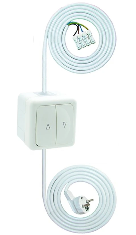 und Schukostecker, sowie 2 Meter Motorkabel mit 4-poliger Schnellverbindungsklemme.