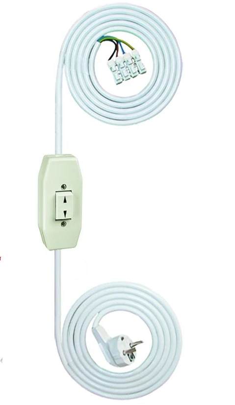 und Schukostecker, sowie 2 Meter Motorkabel mit 4-poliger Schnellverbindungsklemme.