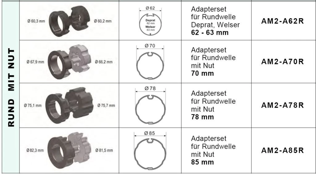 Produkt : Adapterset für Rundwelle mit Nut 70 mm