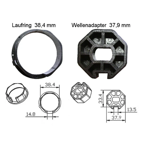 WTS - Adapterset DM-A40K Achtkantwelle 40mm für Mini-Rohrmotoren  Ø 35 mm, Serie DM / DMF / ME