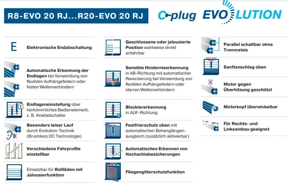 Becker - Rollladenantriebe R8-EVO 20 RJ...R20-EVO 20 RJ der Evolution-Serie für jalousierbare Rollläden