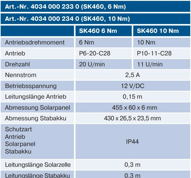 • Lieferumfang: DC-Antrieb, Solarpanel und Akku mit Halterungen, Mini-Lasche-P (4930 200 232 0), Wandlager-P/R mit Raste (4930 300 382 0), Mitnehmer / Ring S40 (4930 300 083 0 / 4930 300 085 0) und Mitnehmersicherung (4930 300 161 0)