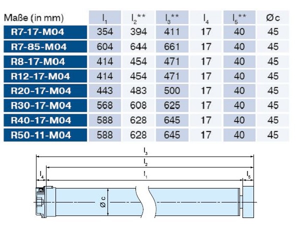 Mitnehmerbreite von S60L (4930 300 466 0) , bei Wahl eines anderen Mitnehmers ändern sich die Maße l2, l3 und l5