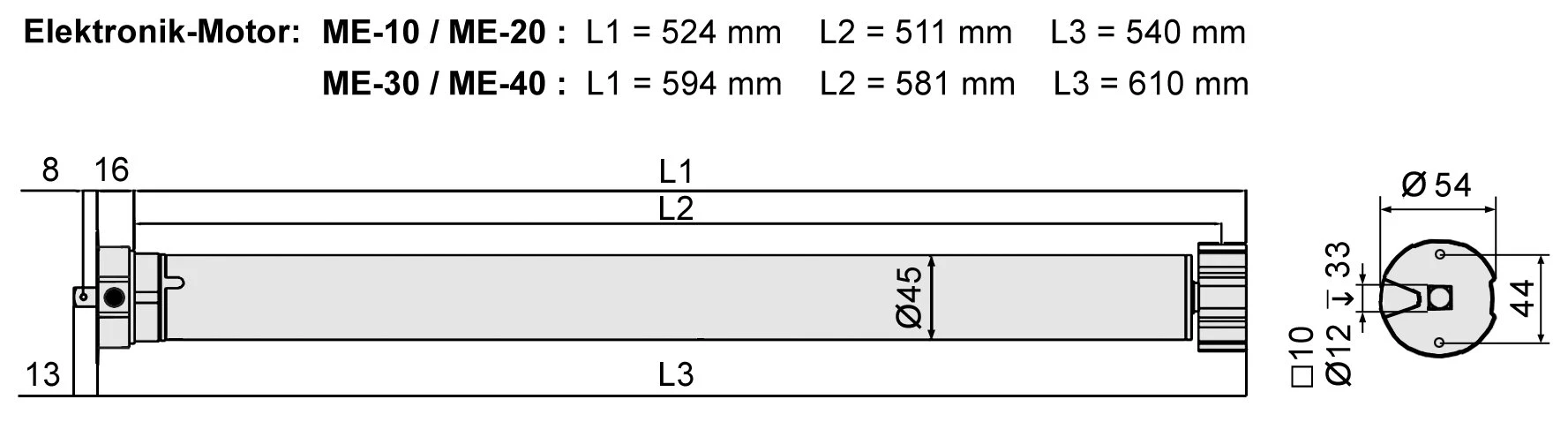 Rohrmotoren Serie ME : mit elektronischer Endabschaltung