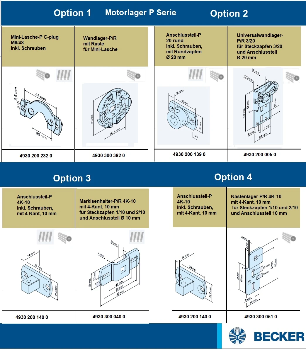 Becker - Rollladenantriebe P5-E01 bis P9-E01 Serie P-E01