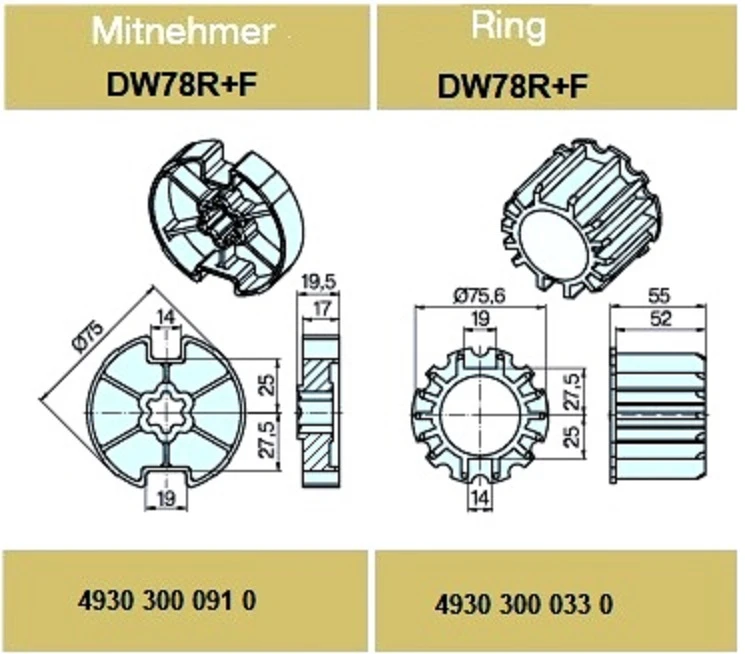 Mitnehmer : DW78R+F Art-Nr.  4930 300 091 0 - GTIN-Nr. 4251852910351