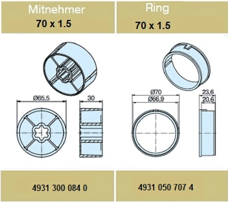 Adapterset für Rundrohr 70 x 1.5 ,für Rohrmotoren Becker Baureihe L Serie