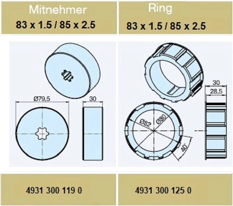 Adapterset für Rundrohr 83 x 1.5 / 85 x 2.5 , für Rohrmotoren Becker Baureihe L Serie