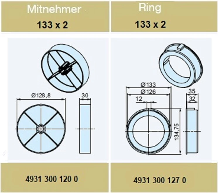 Mitnehmer : 133 x 2 Art-Nr. 4931 300 120 0 - GTIN-Nr. 4251852911327