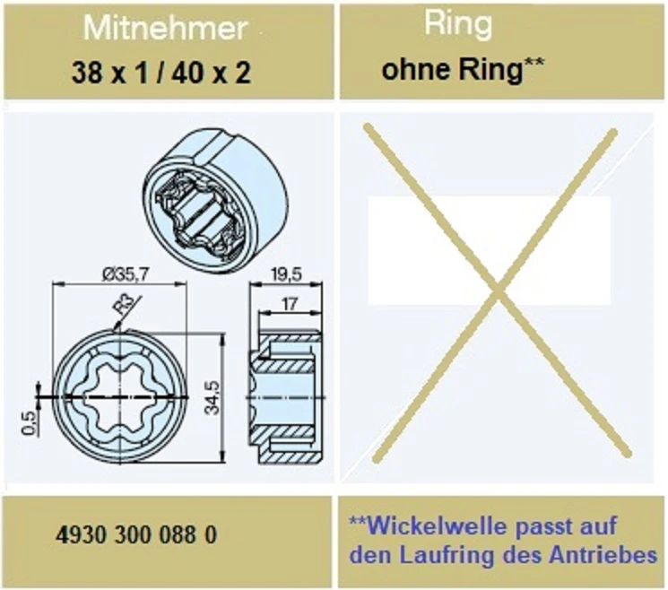 Für Wickelwellen Typ: Rundrohr Ø 38mm