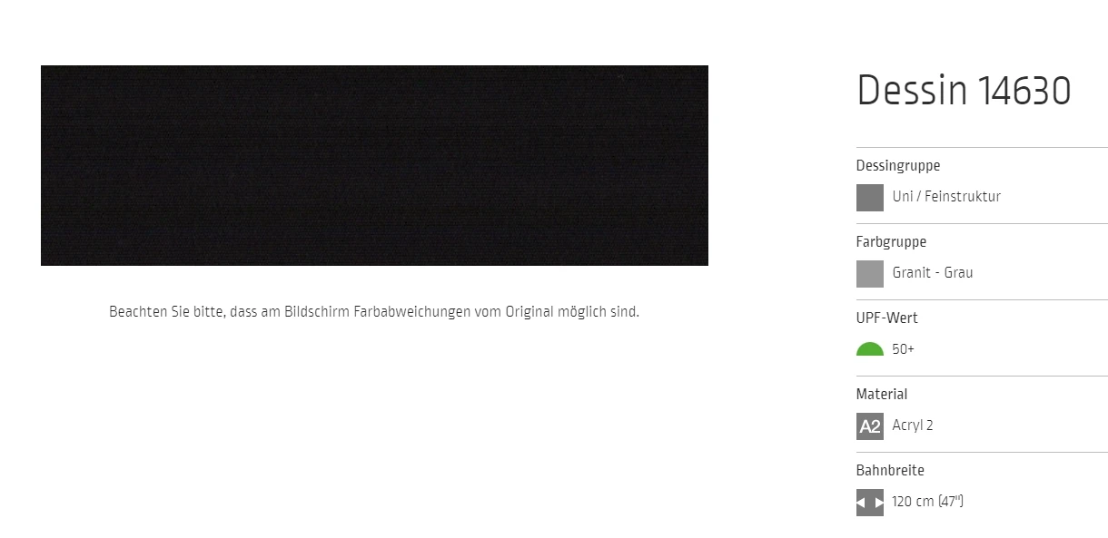 Bei allen Markisenstoffen können Unregelmäßigkeiten in der Oberflächenbeschaffenheit auftreten.