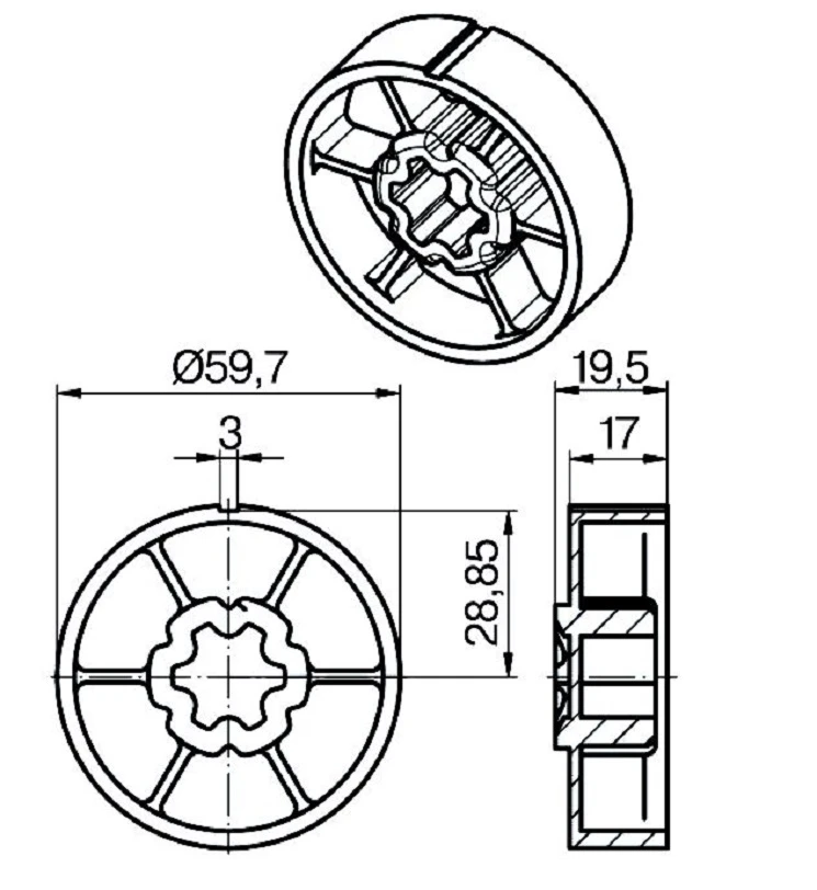 Adapterset Bestehend aus Mitnehmer und Ring aus Kunststoff .  Für Becker Rohrrantriebe der Baureihe P, P5 - P13* und  R, R7 - R50 Serie .