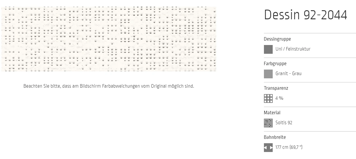 eignen sich besonders für Vario Volants, Seiten- und Senkrechtmarkisen , da sie einen effektiven Sonnen-, Blend- und Wärmeschutz bieten und mit einer Transparenz von 4 % den Blick nach draußen ermöglichen.
