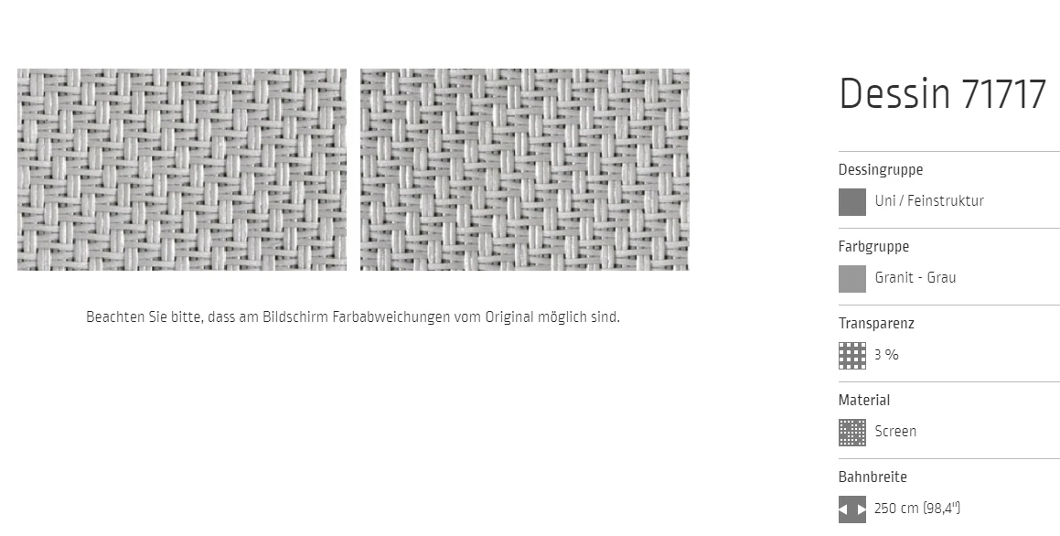 Markisentuch Screen-Gewebe, Granit - Grau Transparenz 3 Prozent, Stoff-Nr. 71717