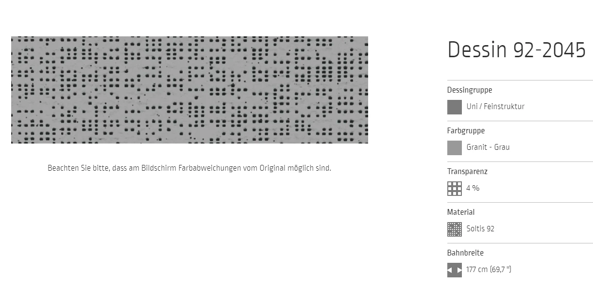 eignen sich besonders für Vario Volants, Seiten- und Senkrechtmarkisen , da sie einen effektiven Sonnen-, Blend- und Wärmeschutz bieten und mit einer Transparenz von 4 % den Blick nach draußen ermöglichen.