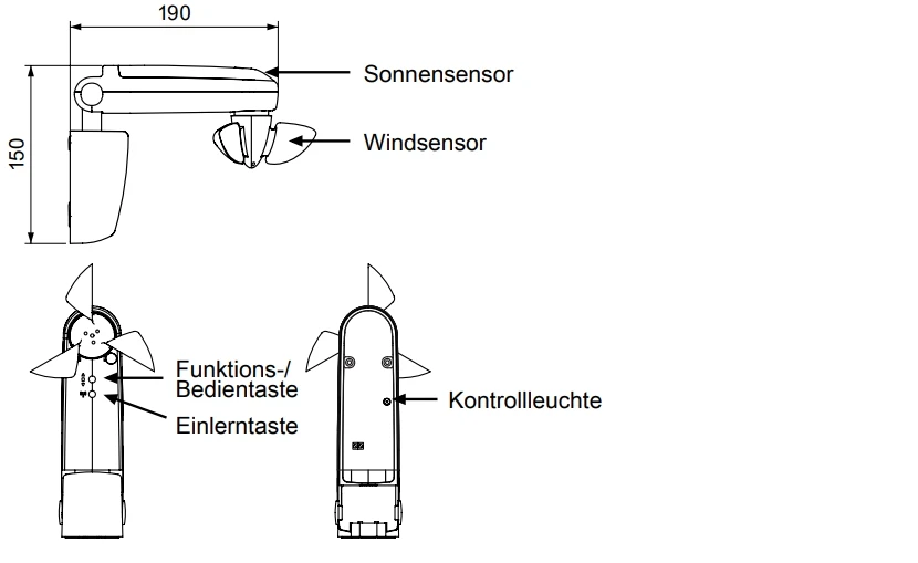 - Bequeme Einstellung der Sonnen- und Wind-Schwellwerte am Sender