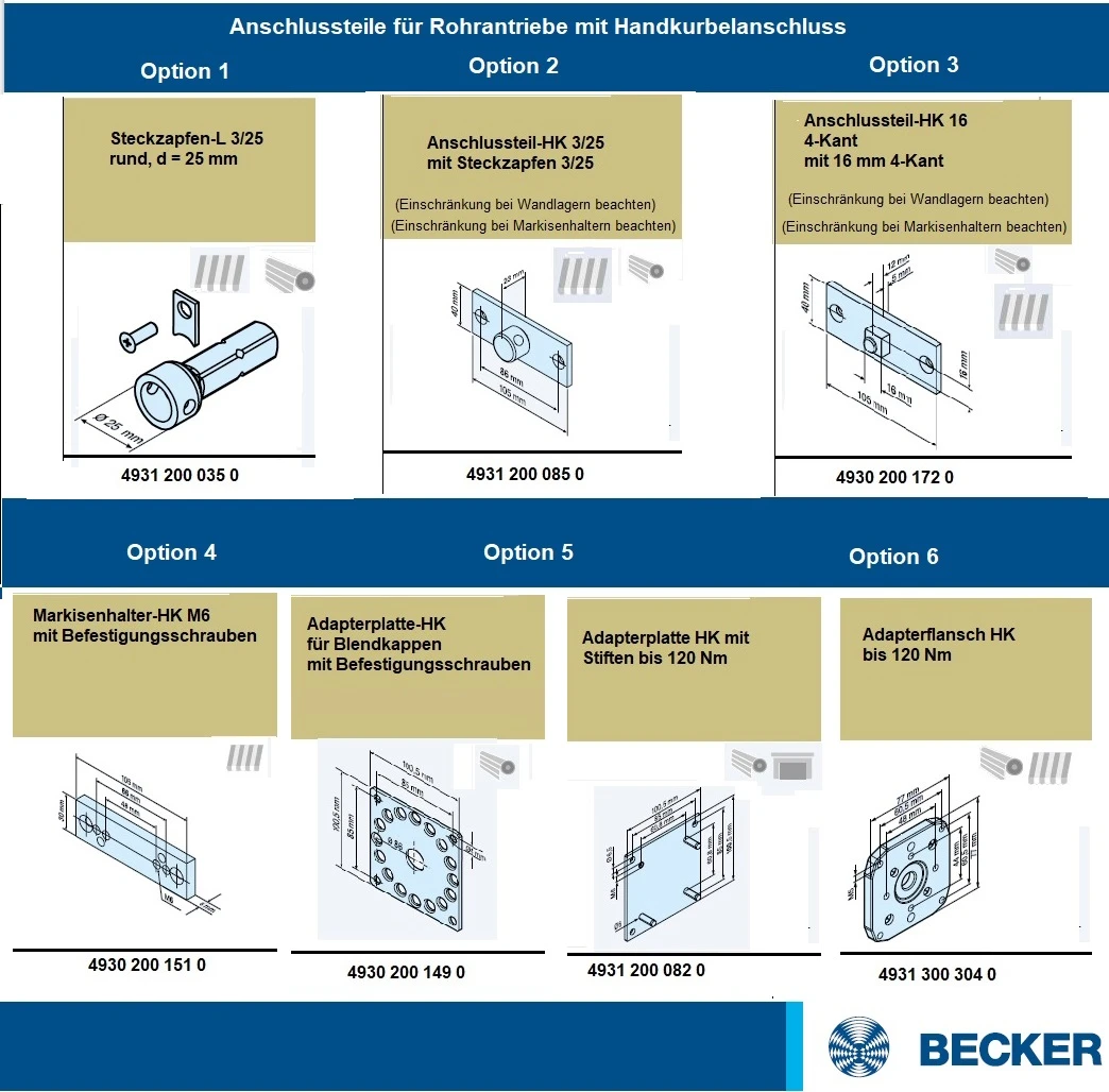 Becker - Rolltorantrieb L60-11-E25 60Nm mit elektronischer Endabschaltung mit Handkurbel- Anschluss