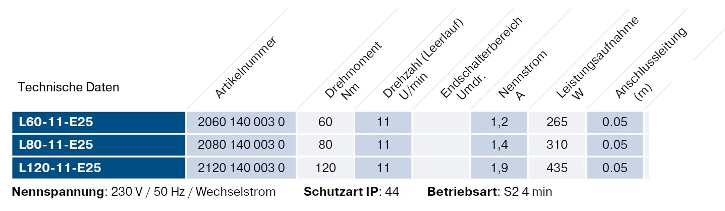 Nennspannung: 230 V/AC / 50Hz Betriebsart: S2 4 min Schutzart: IP44