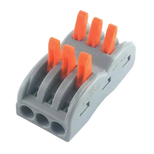 Durchgangsverbinder Serie KLD, 3 Leiter mit 6 Betätigungshebeln/Klemmhebeln