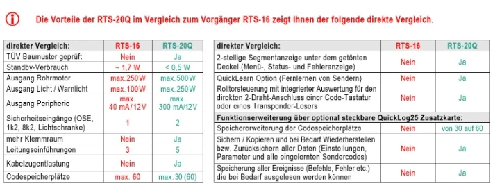 Lieferumfang : 1 x Rolltorsteurung RTS-20Q-WTS-S5