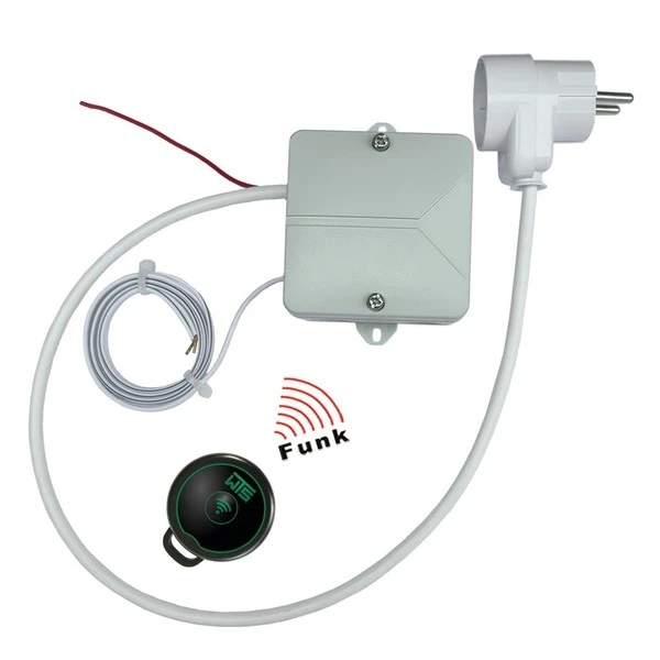 WTS - Funkempfänger 1-Kanal 868 MHz, mit eingelerntem 1-Kanal Handsender SOSR-1K-WTS (KeeLoq), Netzkabel mit Schukostecker 0,5m, 2-adrige Litze 0,5m