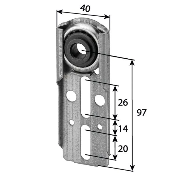 Fertigkastenlager/Walzenkapsellager verzinkt, verstellbar, mit Kugellager Durchmesser 40 mm ohne Ausladung, Maße (HxBxT): 120 x 40 x 16 mm