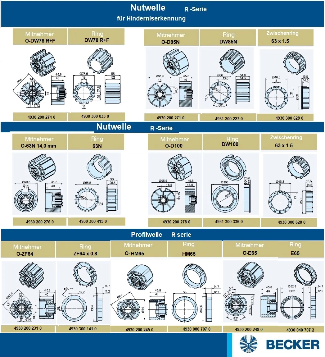 Becker - Markisenantrieb R40-17-E33  zur Nothandbedienung mit elektronischer Endabschaltung Serie R , Typ E33  40Nm