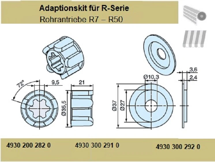 Adaptionskit für Rohrmotore Becker Baureihe R-Serie R7 – R50 bis 40Nm