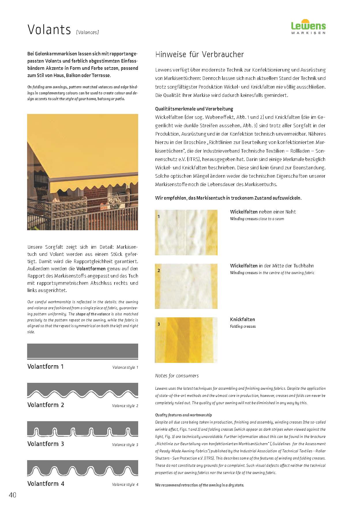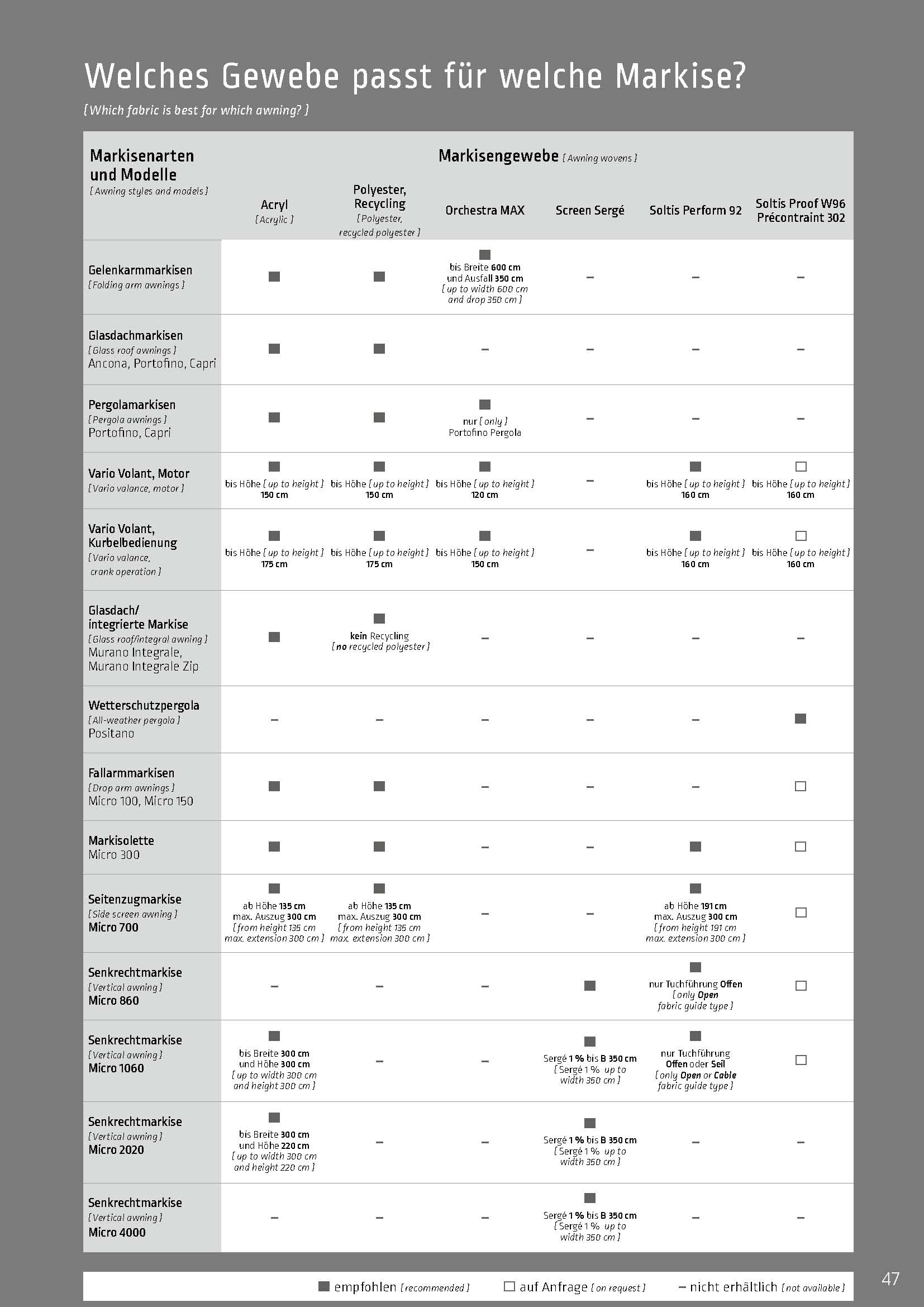 Info über Stoff Arten  für welche Markisen typen angemessen sind als PDF