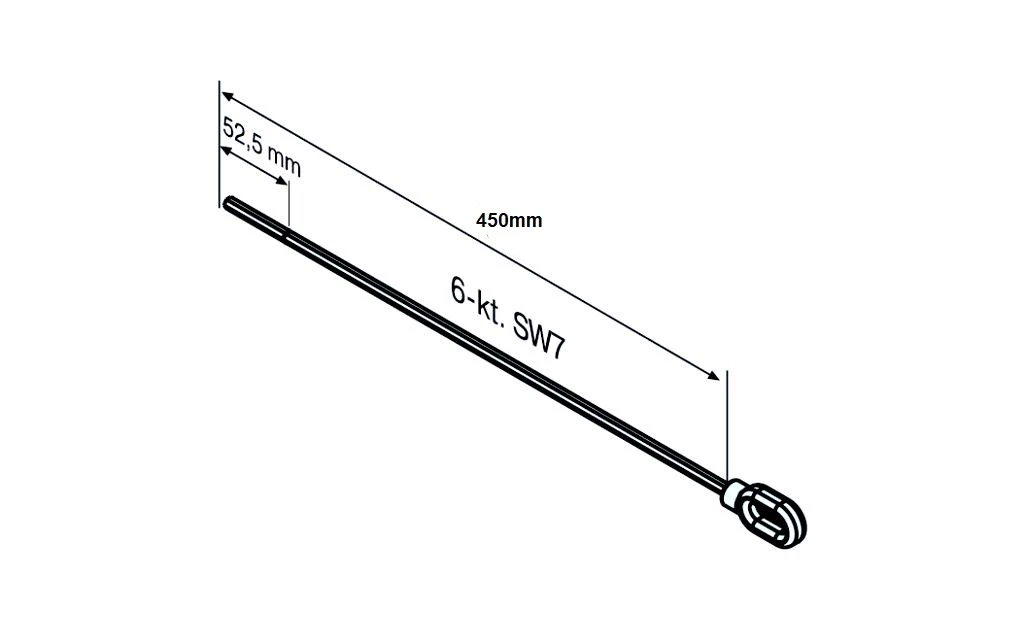 Öse mit Sechskantstab SW 7 mm 450-HK  für Becker Rohrantriebe mit Handkurbelanschluss, länge 450mm
