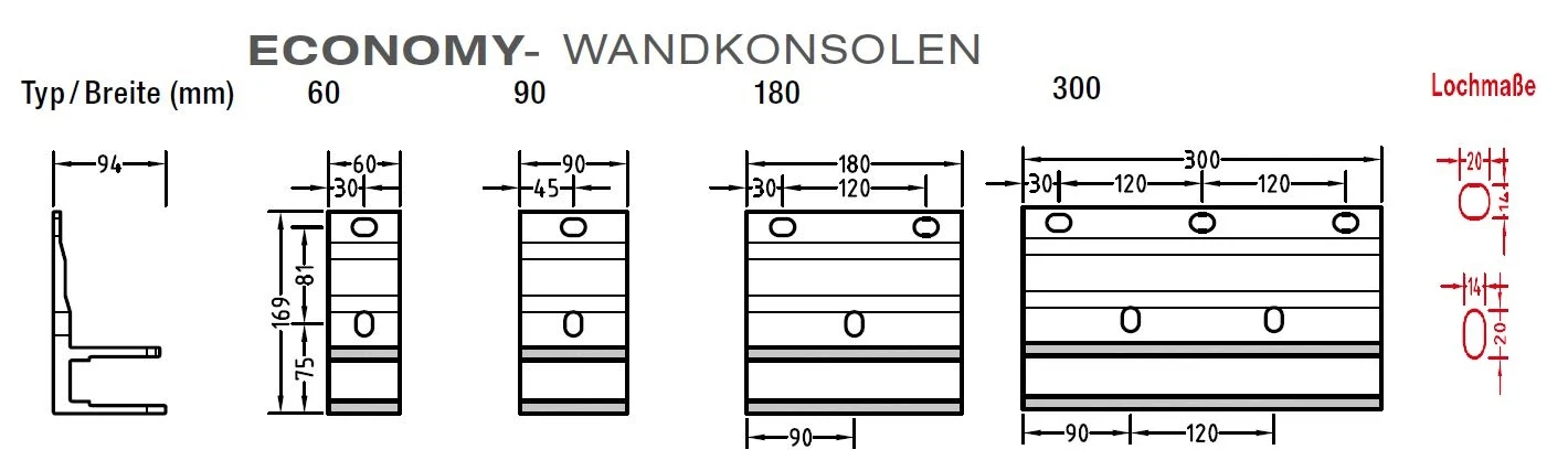 Wandkonsole, bepulvert in Gestellfarbe (bei silber immer RAL 9006)