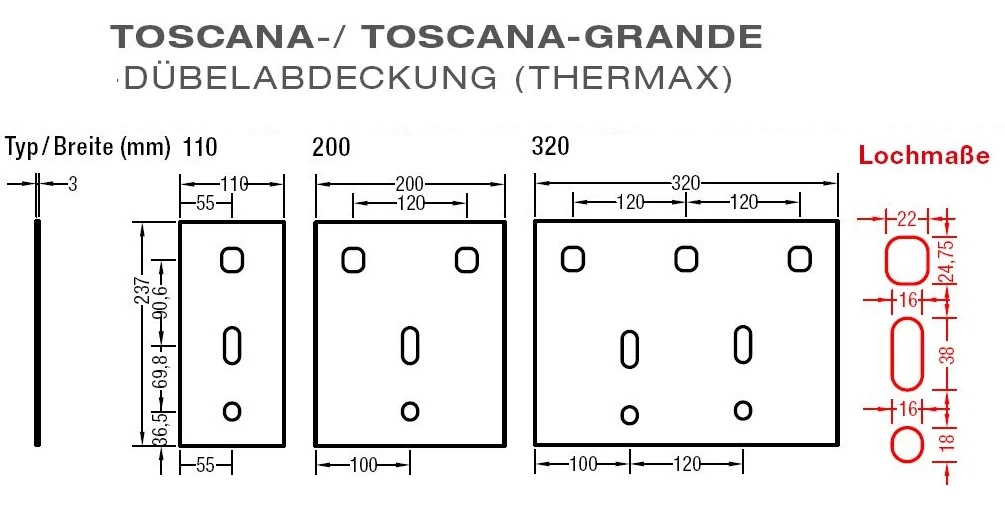 Dübelabdeckung-Thermax für Lewens Toscana Markise.